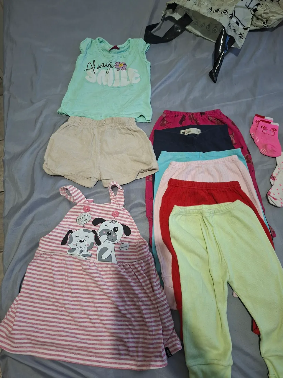 Conjunto de roupas infantis para meninas, com diversas peças e estampas alegres. Perfeito para o dia a dia, garantindo conforto e estilo para as pequenas. 6 meses- 1 ano