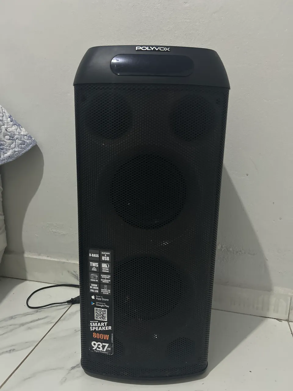 Aproveite o som potente e de alta qualidade da caixa de som Polyvox Smart Speaker 800W! Com tecnologia X-Bass, TWS e luzes, você terá uma experiência sonora incrível. Conecte via USB ou Bluetooth e eleve suas festas!