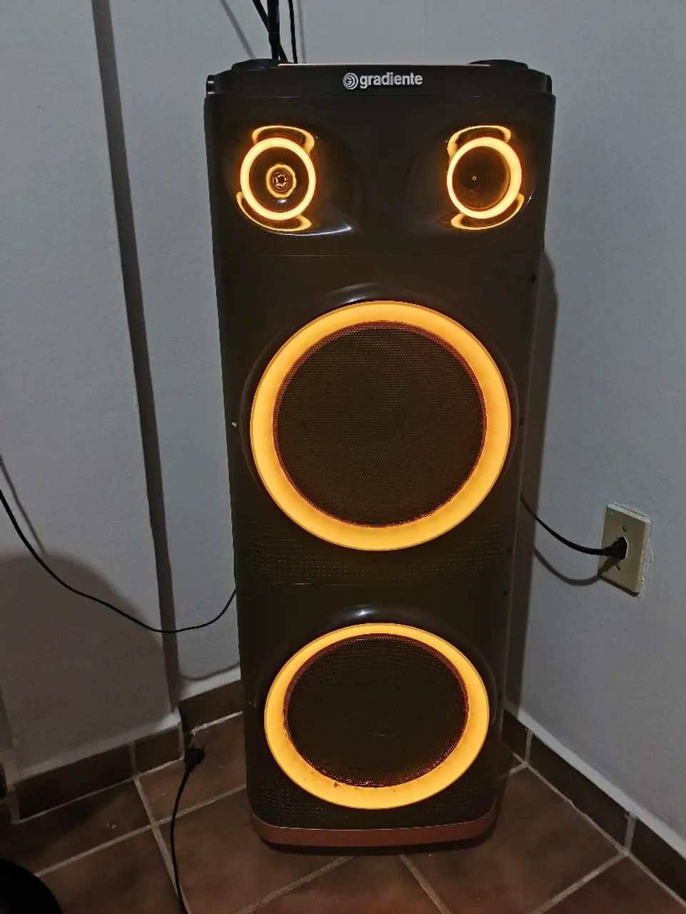 A GCA112 oferece uma experiência completa. É bivolt automático, tem luzes, diversas opções de personalização de áudio e muita potência para a sua festa. Basta conectar sua torre a rede elétrica com um cabo alimentação.