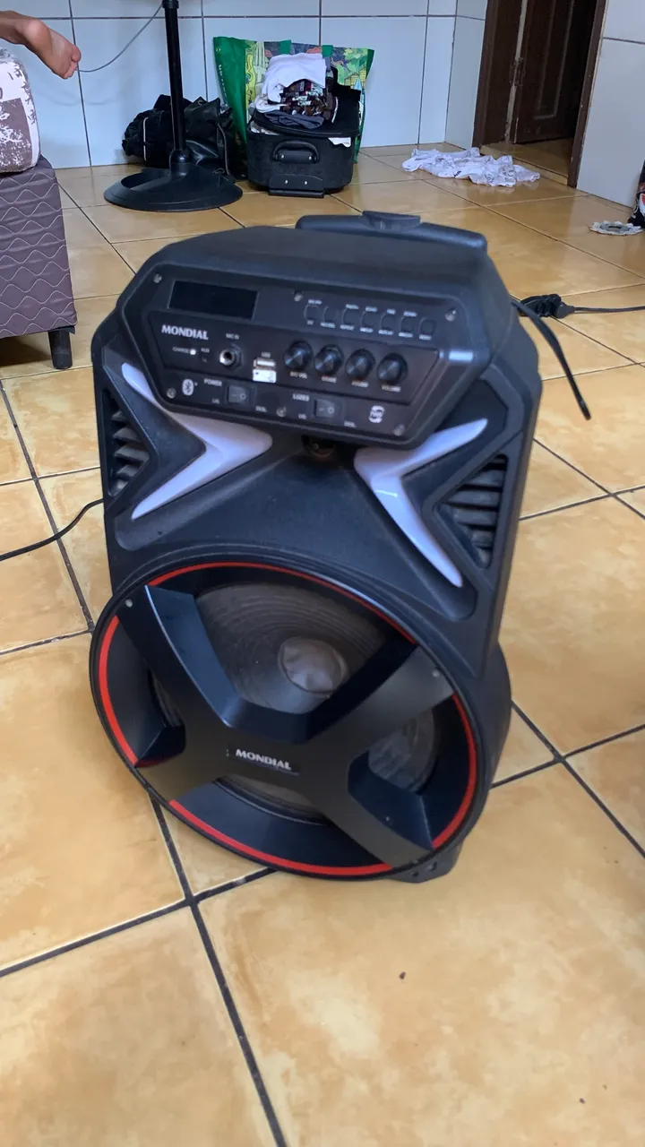 Vende-se caixa de som marca mondial, em boas condições funcionando perfeitamente, acompanha tomada de carregamento. Número para contato: 689... ver número
