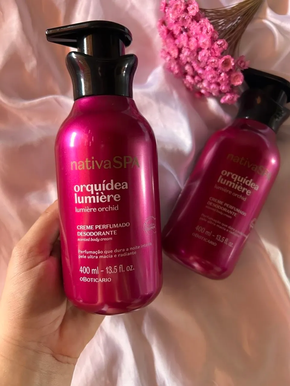 Desfrute da fragrância envolvente de Orquídea Lumière com este creme perfumado desodorante de O Boticário! Sinta a pele macia e radiante com uma perfumação que dura a noite toda. Experimente essa explosão de beleza e cuidado!