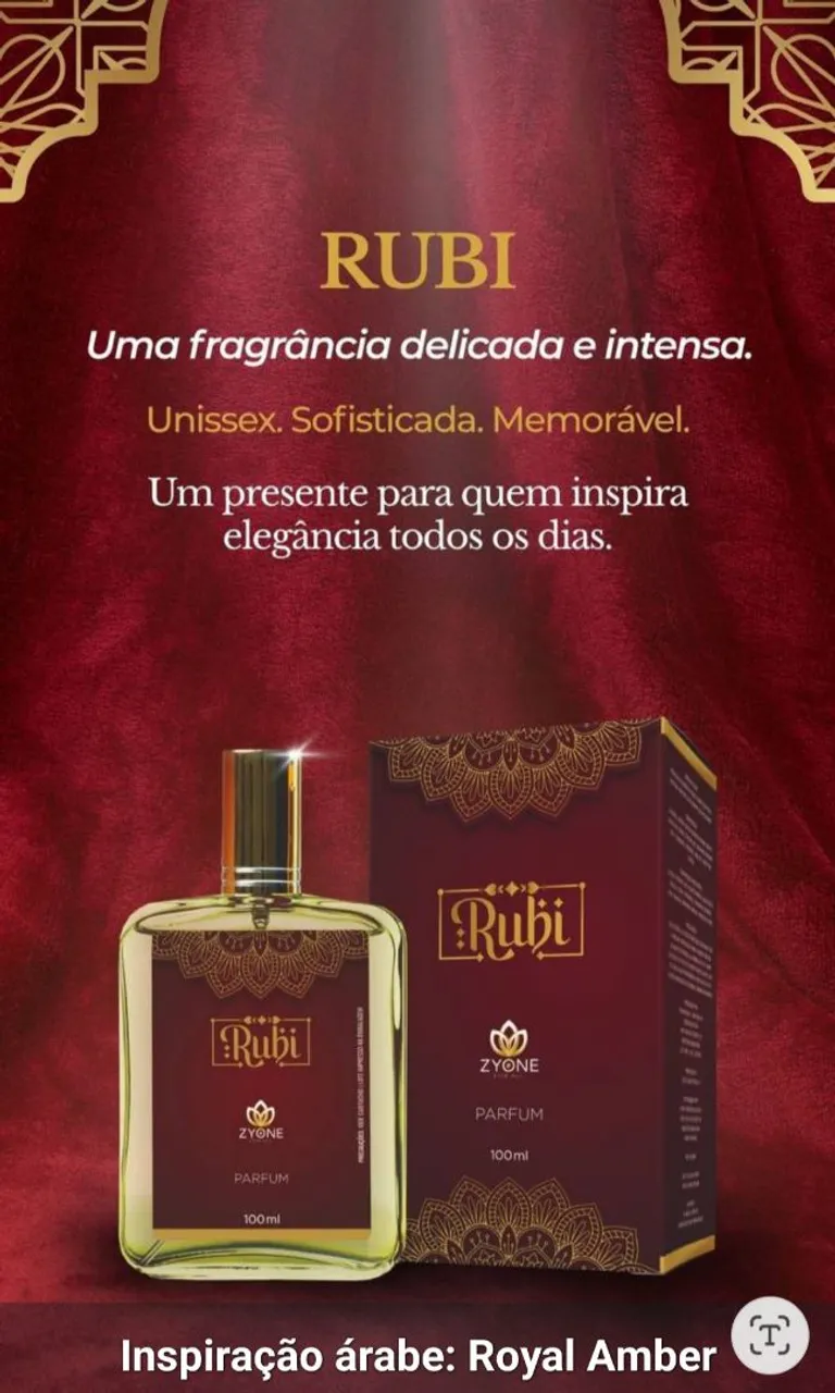 Descubra a sofisticação de Rubi, uma fragrância unissex memorável. Inspirada na elegância árabe, Rubi é o presente perfeito para quem busca inspiração e requinte em cada dia.