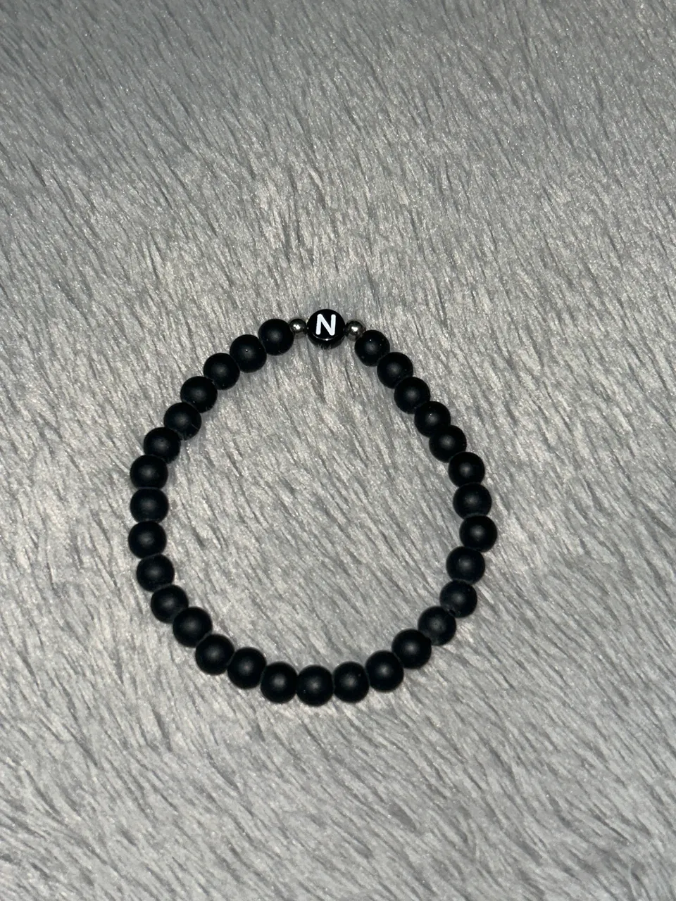 Linda pulseira de bolinhas pretas, com detalhe da inicial N. Perfeita para dar um toque especial ao seu visual.