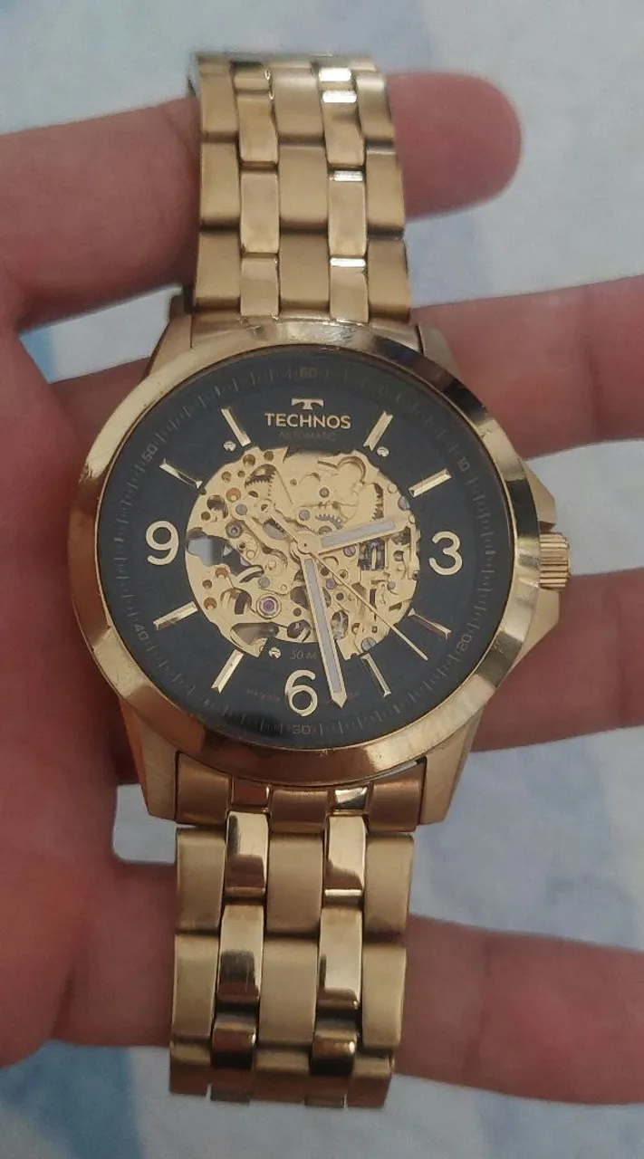 Relógio Technos automático dourado, funcionando perfeitamente. Não aceito menos de 500.