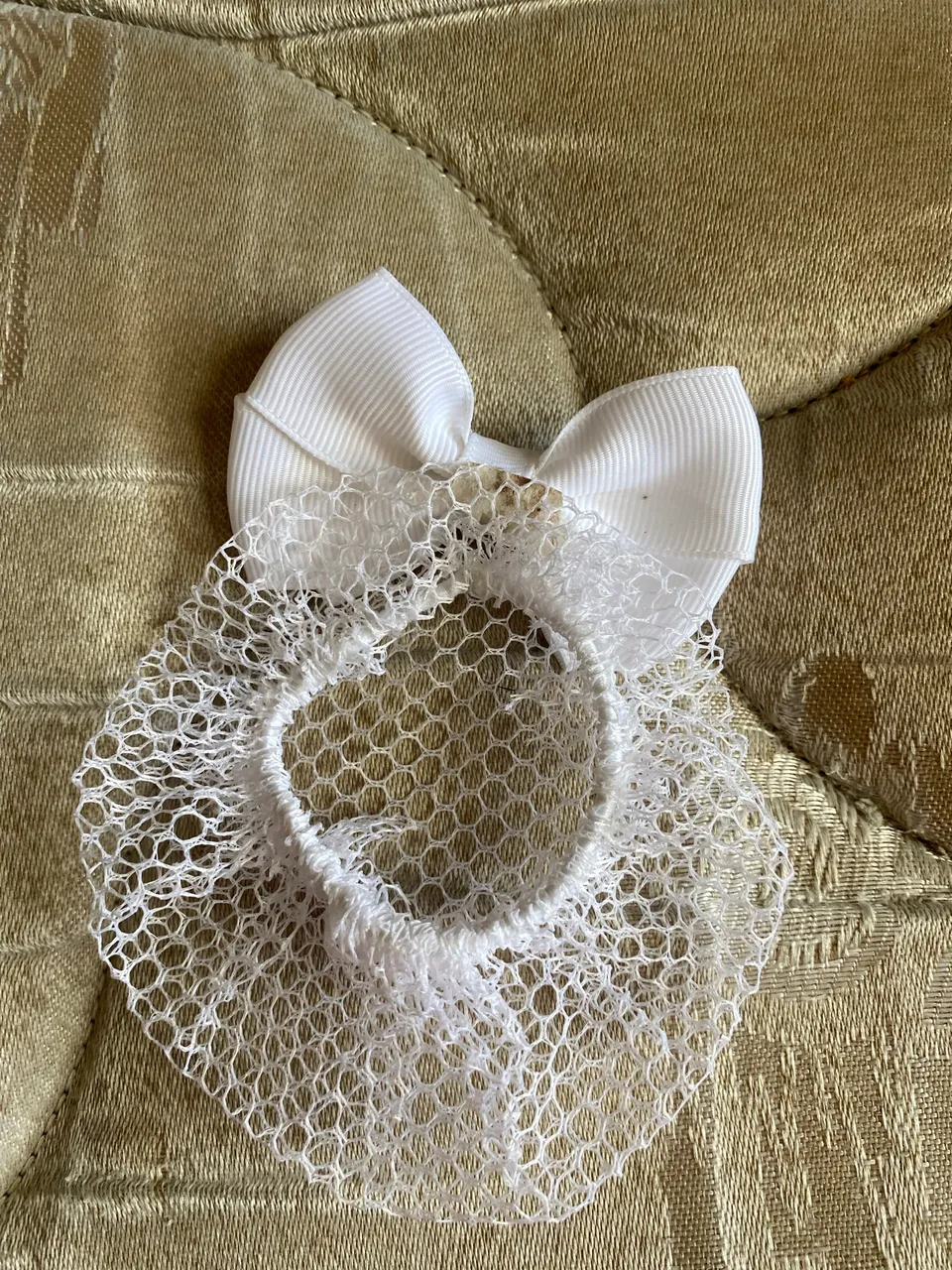 Linda renda de cabelo branca com laço, ideal para complementar seu visual.