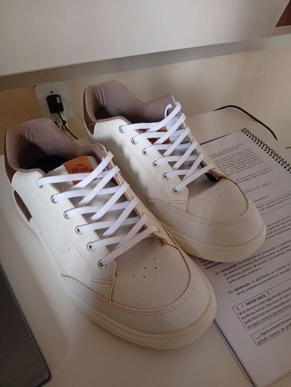Sapatênis branco com detalhes em marrom. Conforto e estilo para o seu dia a dia!