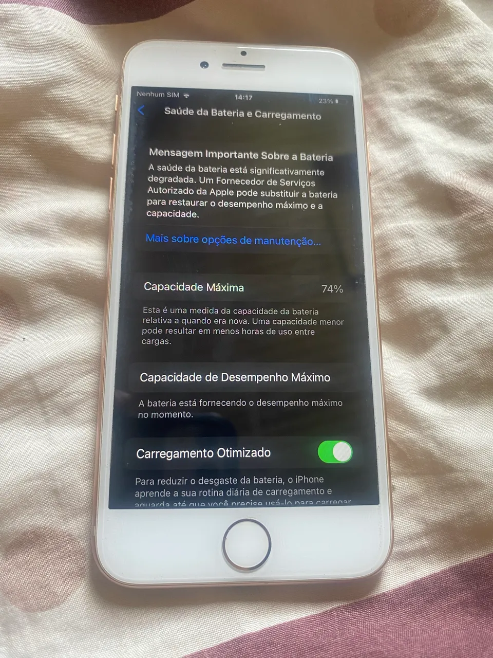 iPhone8 funcionando perfeitamente não tem trincos acompanha carregador e 2 capinhas. Bateria com 74% de saúde.