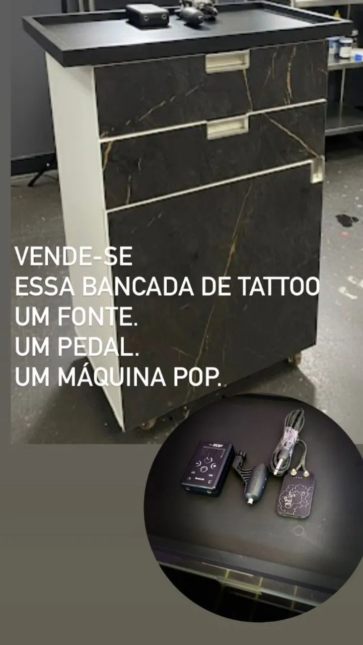 Prepare-se para elevar sua arte da tatuagem! Apresentamos uma bancada completa, com fonte, pedal e máquina POP. Tudo o que você precisa para criar obras incríveis. Adquira já!