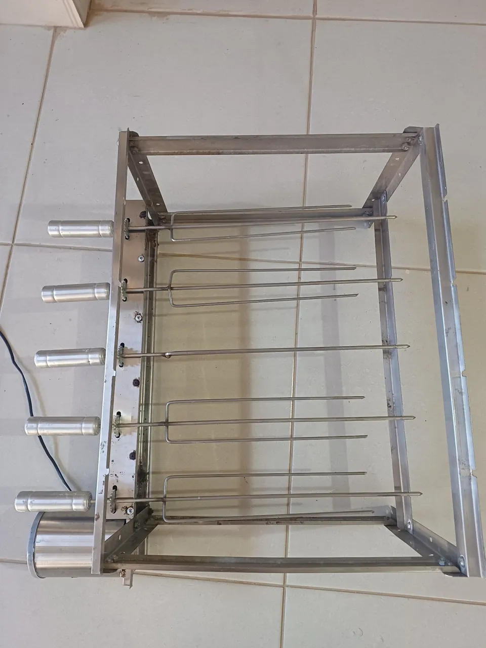 Churrasqueira giratória elétrica, com 5 espetos, ideal para preparar churrascos deliciosos de forma prática e eficiente. Perfeita para assar carnes e outros alimentos de maneira uniforme. Só vendo! Tel: 68 ... ver número