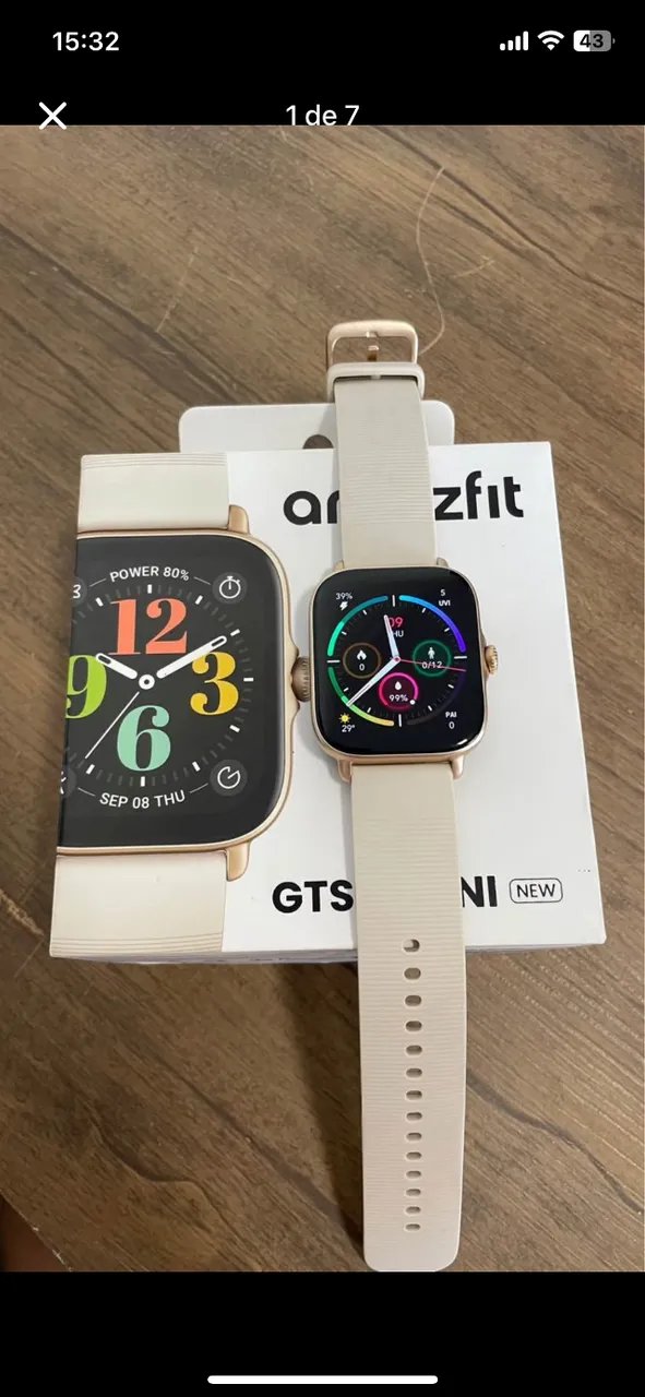 Smartwatch Amazfit GTS 4 Mini! Design elegante, tela vibrante e bateria de longa duração. Monitoramento completo de saúde e atividades, tudo no seu pulso. Conectividade e estilo para o seu dia a dia!