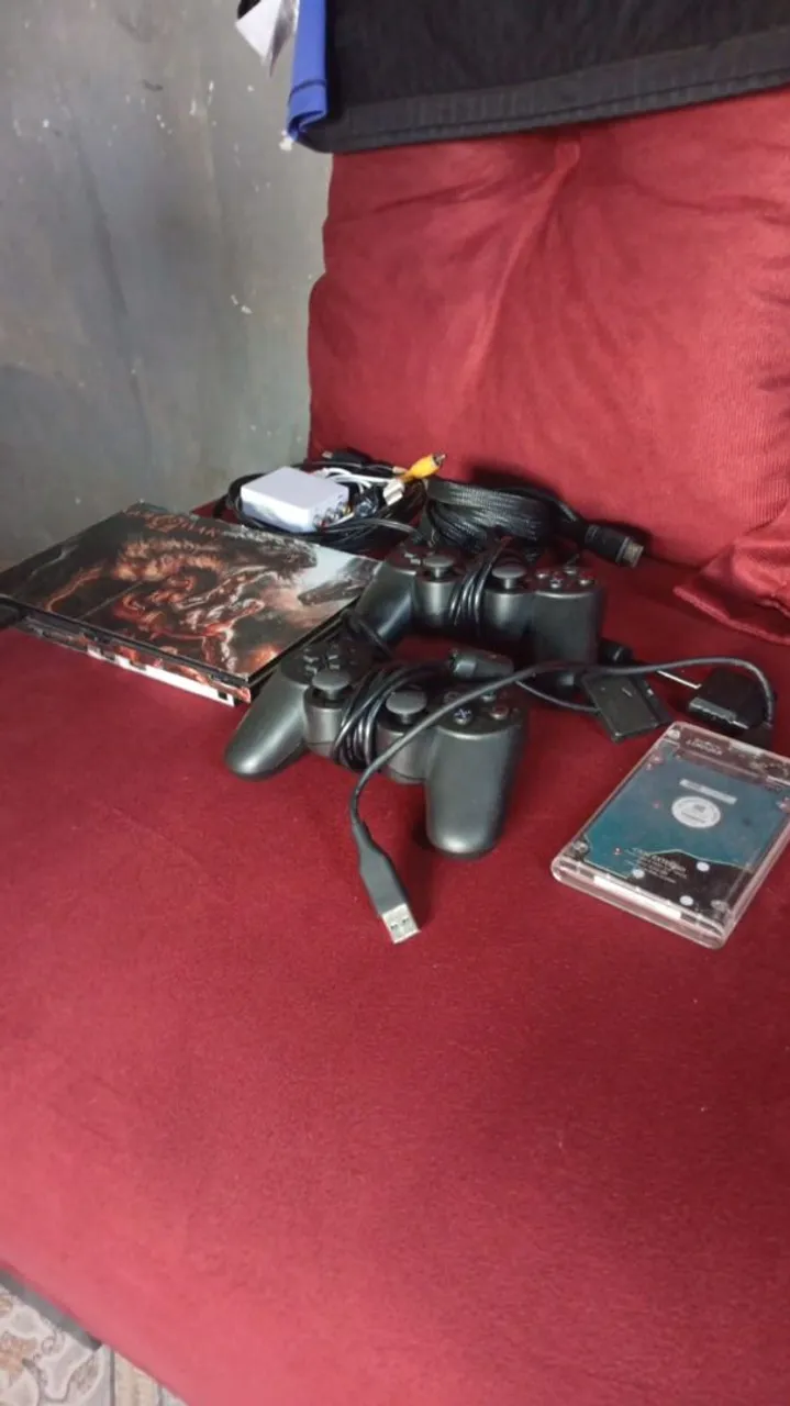 Reviva a nostalgia! Playstation 2 completo, com dois controles, para você se divertir com os clássicos. Garanta já o seu!