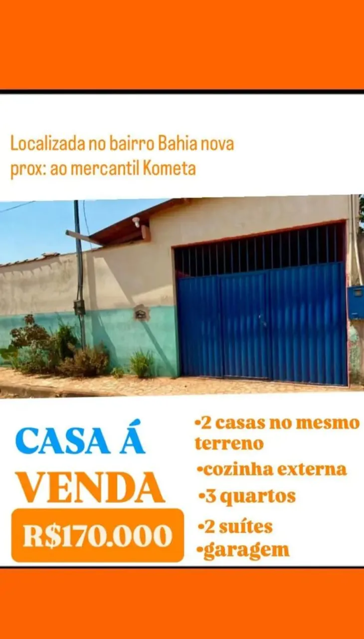 Vendo por motivo de viagem 2 casas no mesmo terreno , no bairro Bahia nova .