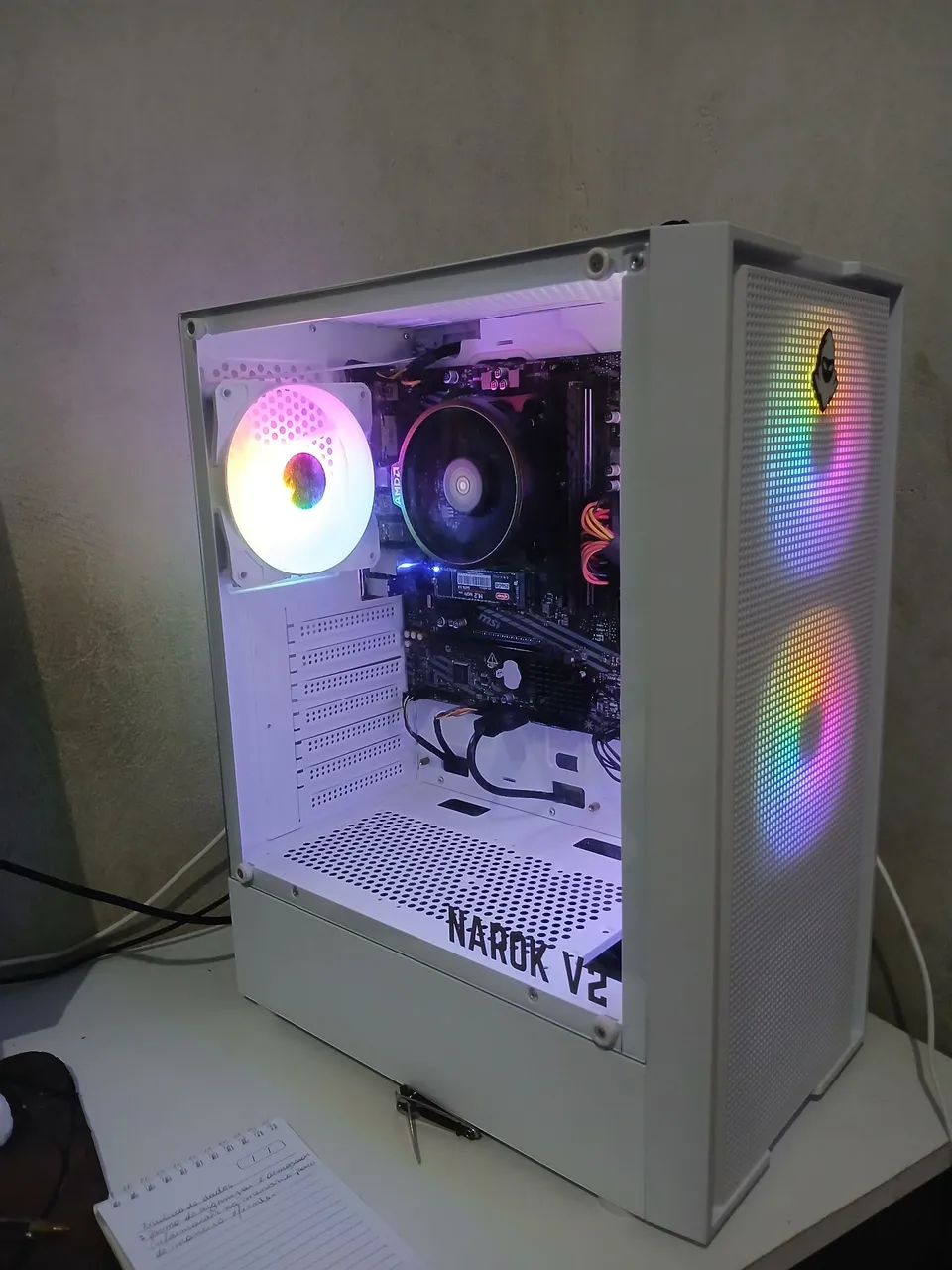 Menos de 2 mezes de uso, ryzen 5 5600gt, 1x8 gb ram, ssd nvme m.2 256gb, a520m a pro msi, fonte 500w 80 plus pfc ativo,