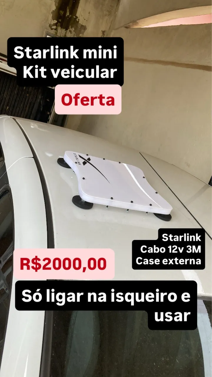 Tenha internet de alta velocidade em qualquer lugar com o Starlink mini! Kit veicular completo! Só ligar no isqueiro e usar Tenho cabo regulador de voltagem 12v pra 30v!