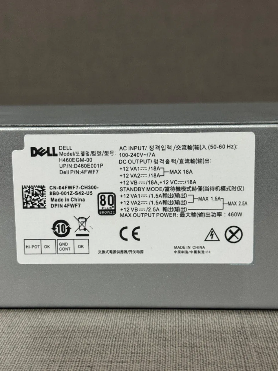 Fonte de alimentação Dell H460EGM-00, com 460W de potência