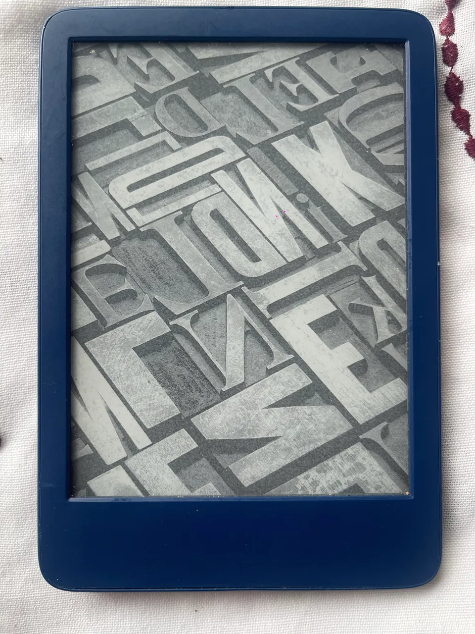 kindle colors azul, sem backlight (controle de luz não funciona, mas ainda dá pra ler em local iluminado)