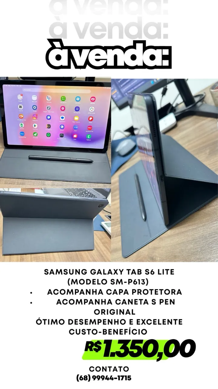 Experimente a excelência com o Tablet Samsung Galaxy Tab S6 Lite! Desfrute de desempenho impecável, design elegante e uma tela vibrante para uma experiência visual incrível. Acompanha capa protetora e caneta S Pen original, garantindo praticidade e versatilidade. Aproveite o excelente custo-benefício!