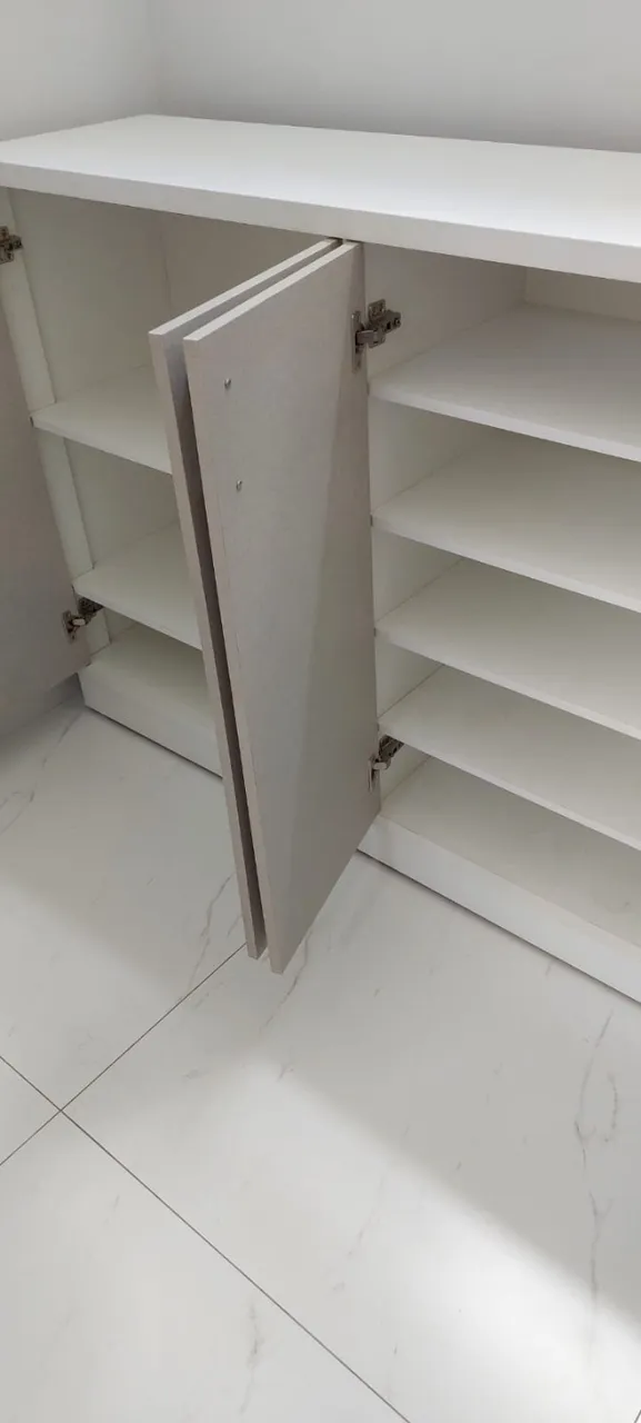 Lindo armário branco com várias prateleiras internas, perfeito para organizar seus pertences. Design moderno e funcional para qualquer ambiente, com as seguintes dimensões: 0,9m de altura, 1,50m de comprimento e 0,40m de profundidade.