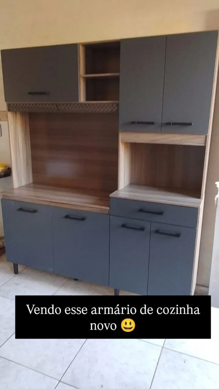 Lindo armário de cozinha novo, com design moderno e cores que combinam com qualquer ambiente. Aproveite!