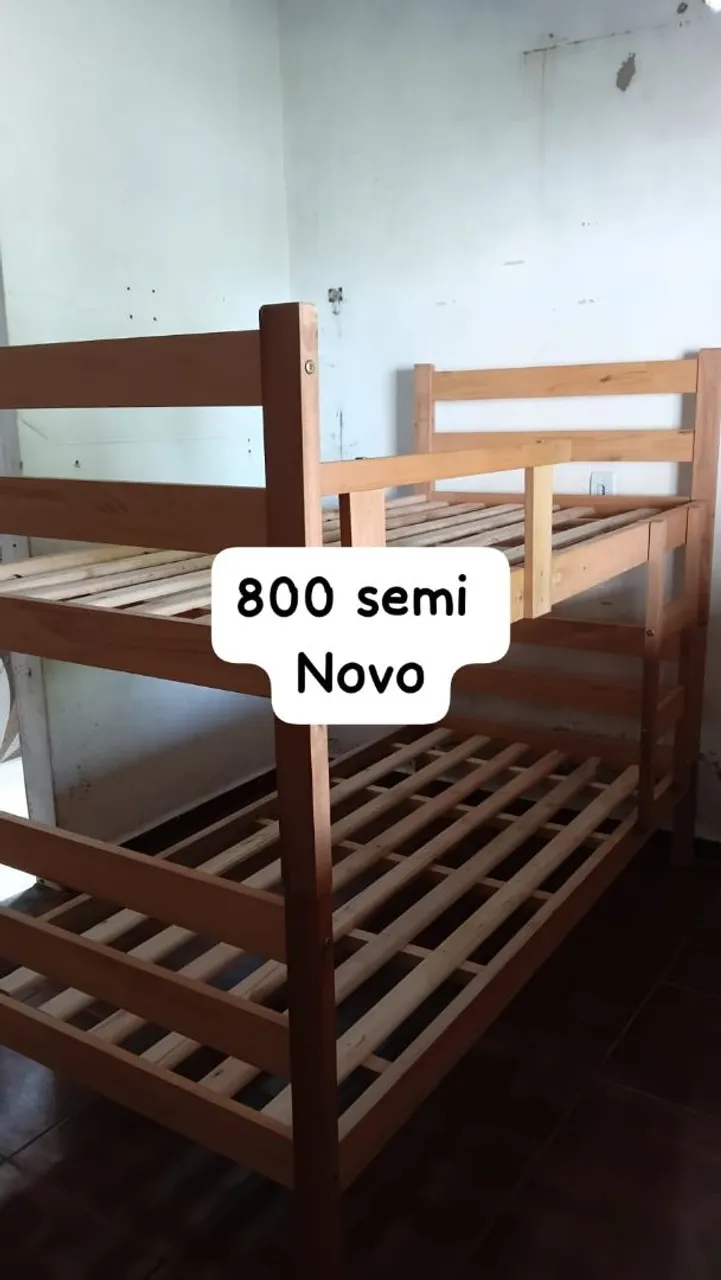 Beliche de madeira, ideal para otimizar espaço em quartos. Design simples e funcional, perfeito para acomodar duas pessoas com conforto.