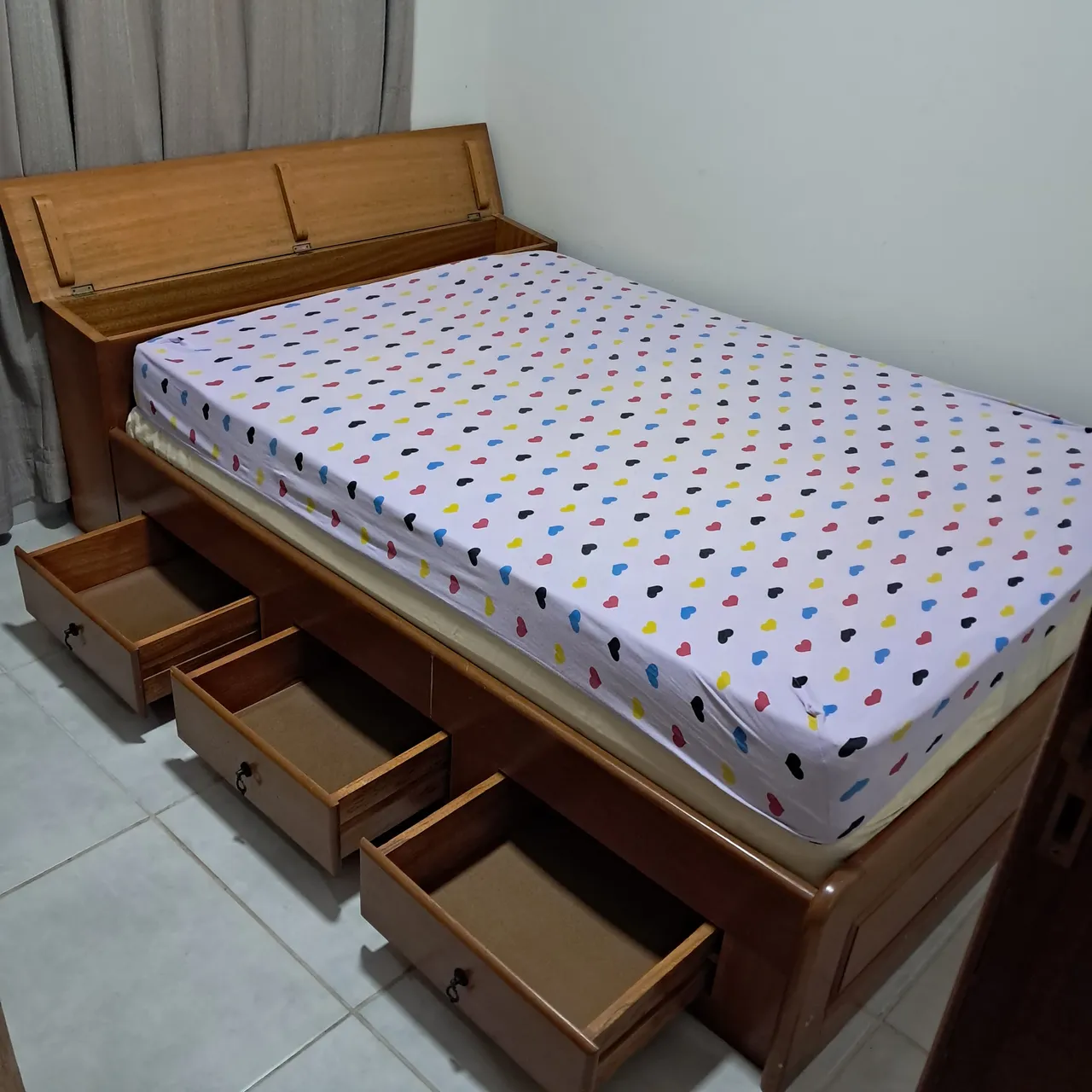 Vendo Cama de Casal com Baú e gavetas, acompanha colchão de casal também de ótima qualidade.