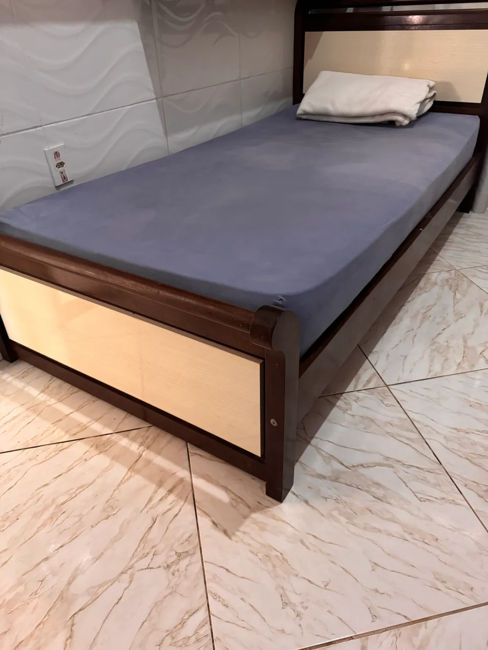 Cama solteirão de madeira, design elegante e confortável para suas noites de sono. Acompanha colchão. Perfeita para quem busca praticidade e qualidade!