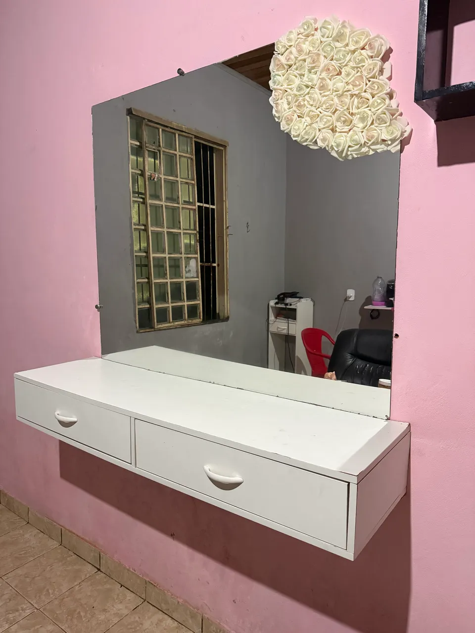 Charmoso camarim branco, perfeito para transformar seu espaço de beleza. Design moderno e funcional, ideal para organizar seus produtos e criar um ambiente sofisticado. Adicione elegância ao seu cantinho!