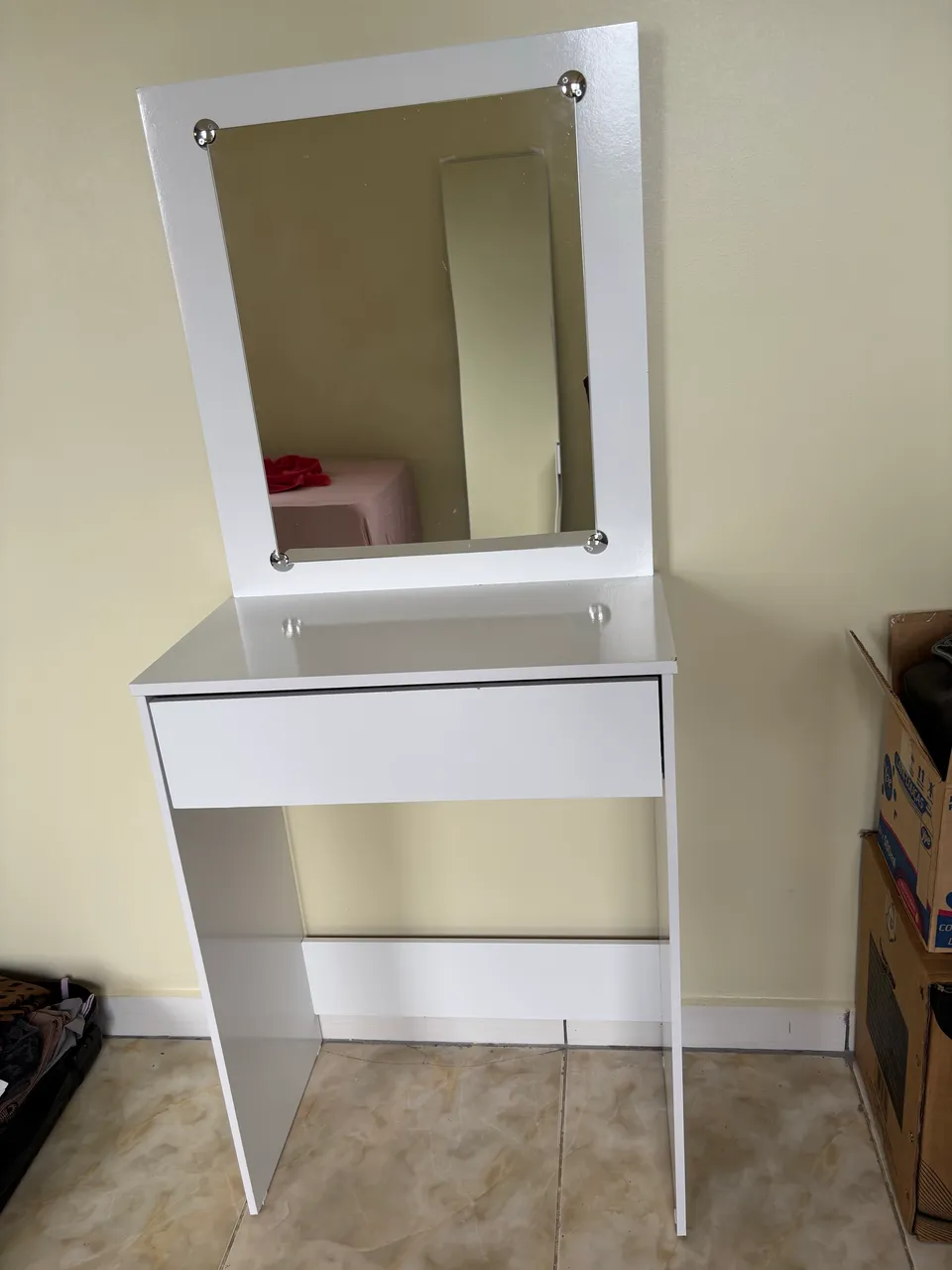Linda penteadeira com design moderno e elegante. Ideal para organizar seus cosméticos e maquiagens, novinha com uma gaveta