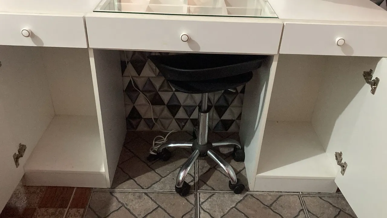 Linda penteadeira camarim, perfeita para organizar seus cosméticos e maquiagens. Design moderno e funcional, com amplo espaço de armazenamento e espelho. Ideal para criar um cantinho de beleza charmoso e prático.
