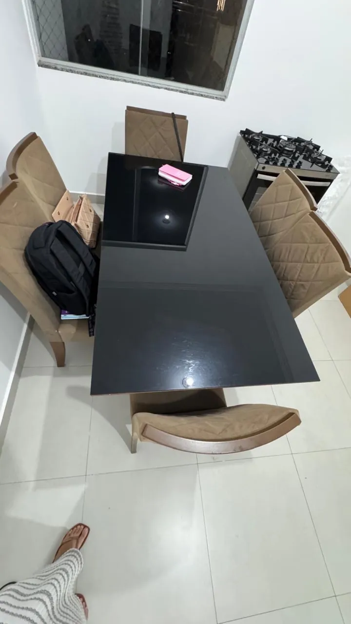 Mesa com tampo de vidro + 6 cadeiras Não entrego! Meu WhatsApp: 689... ver número