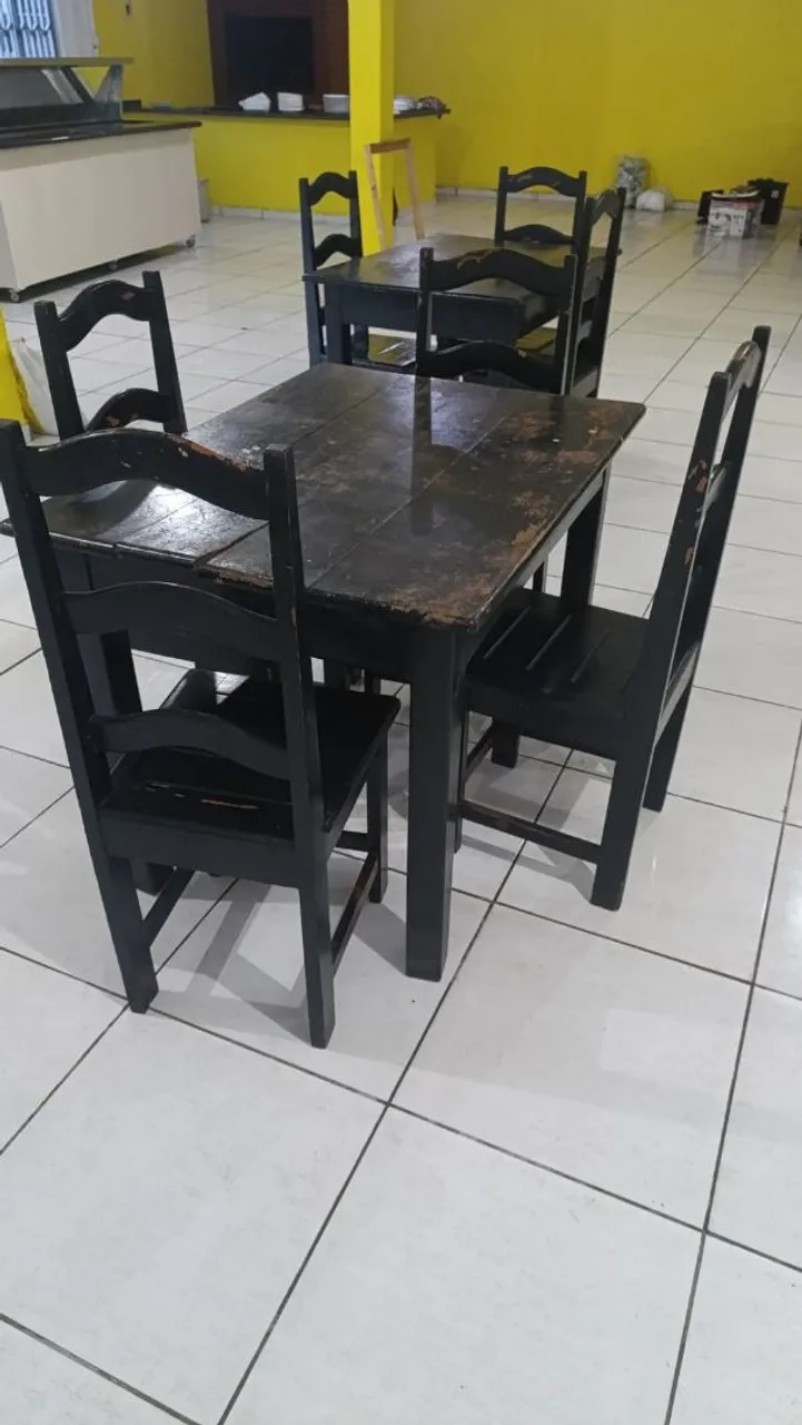 Conjunto de mesa e cadeiras perfeito para sua cozinha ou área de refeições. Design rústico e resistente, ideal para criar um ambiente acolhedor e convidativo. Vendo as 3 mesas e cadeiras por 1200 interessados chamar no pv ou no whatsapp 9811... ver número