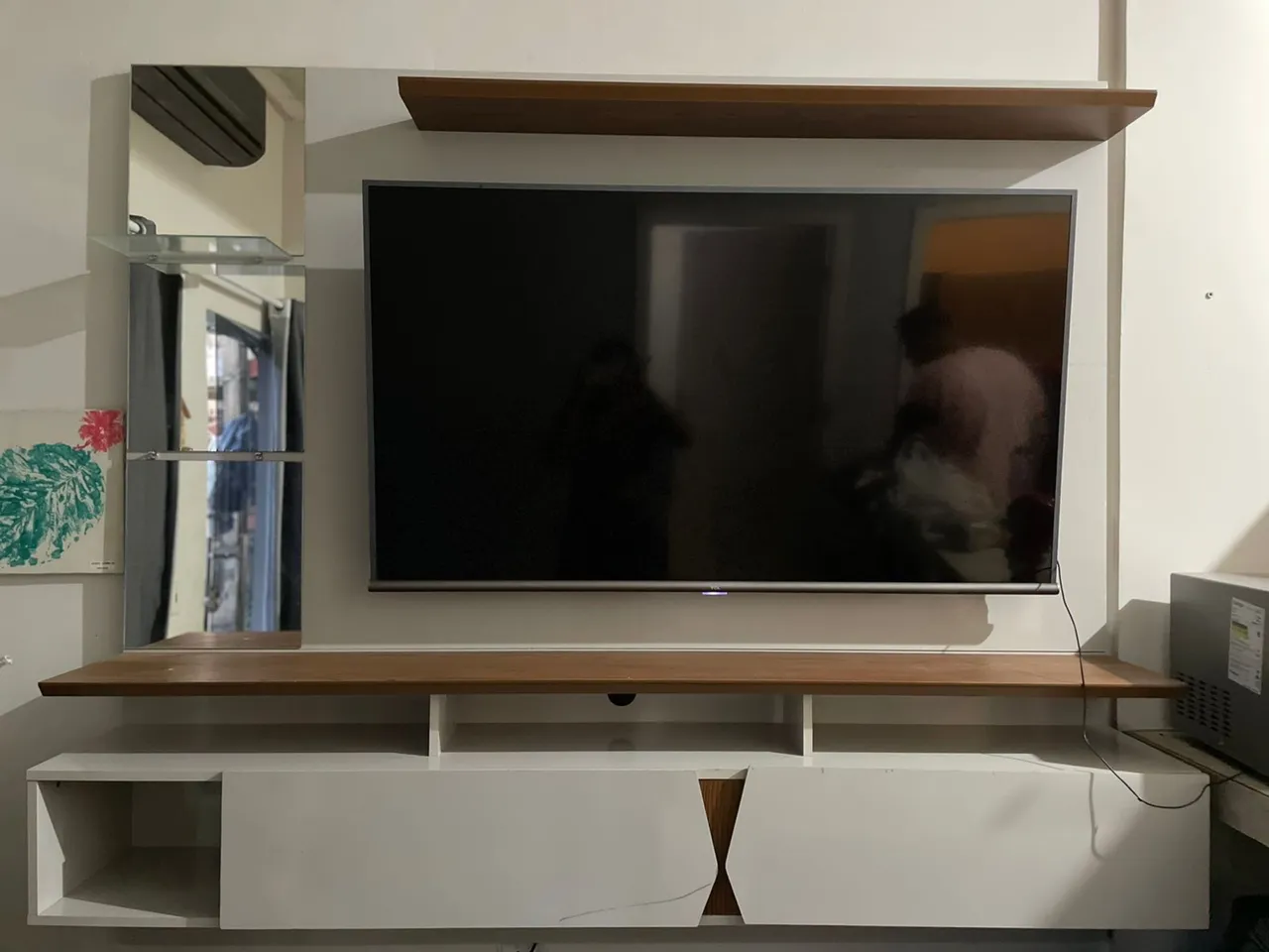 Transforme sua sala com este painel elegante! Design moderno com detalhes em madeira e acabamento branco que agregam charme e funcionalidade ao ambiente.