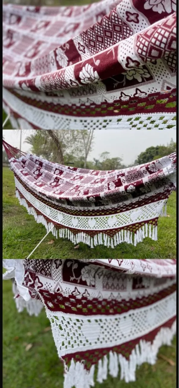 Linda rede de descanso artesanal, perfeita para relaxar e decorar seu espaço externo. Feita com tecido de alta qualidade e detalhes únicos, proporcionando conforto e estilo. Ideal para momentos de lazer e descanso.