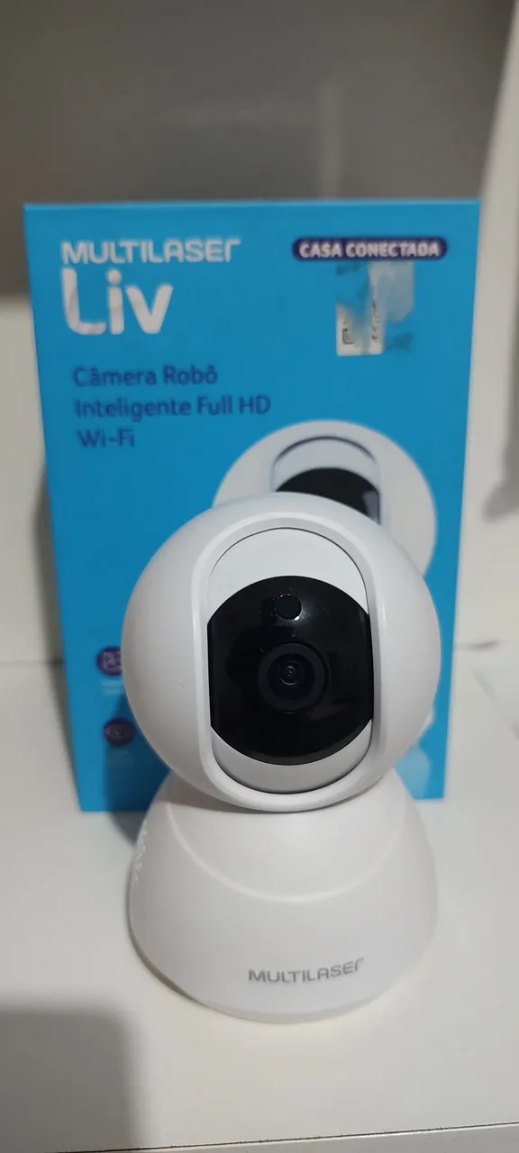 Câmera Robô Inteligente Full HD Wi-Fi da Multilaser Liv. Monitore sua casa com segurança e praticidade. Imagens nítidas e conectividade sem fio.