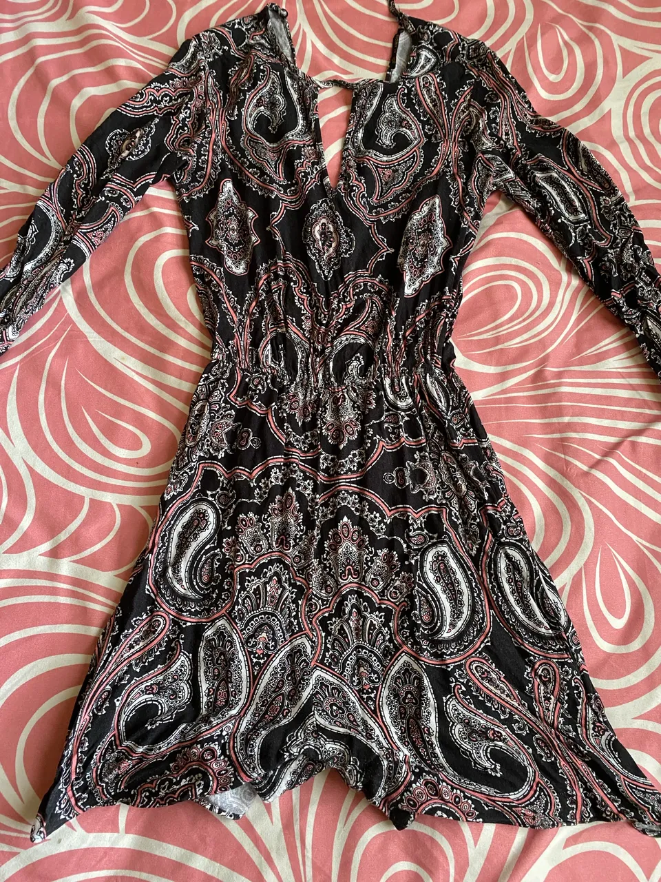 Macacão com estampa paisley vibrante e design elegante, perfeito para diversas ocasiões. Conforto e estilo em uma única peça! Pagamento à vista.