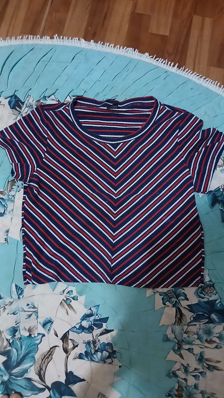 Linda blusa cropped listrada, perfeita para um look moderno e estiloso. Detalhes vibrantes e design único para você arrasar em qualquer ocasião.