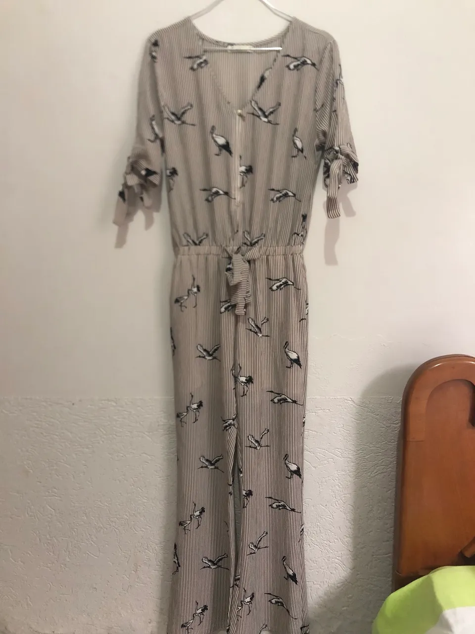 Lindo macacão com estampa de pássaros, perfeito para um visual estiloso e confortável. Ideal para diversas ocasiões, combine com acessórios e arrase!