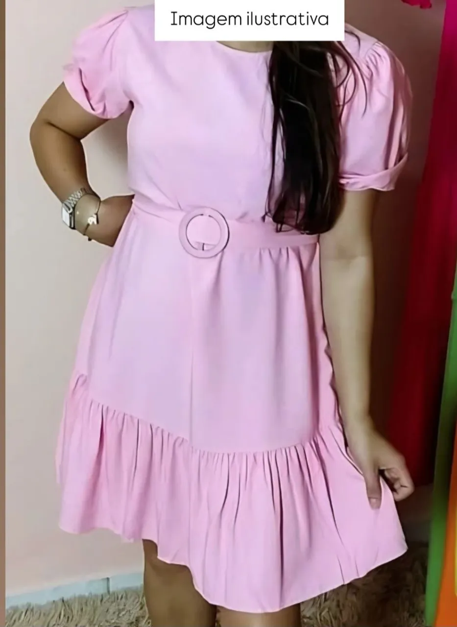 Charmoso vestido rosa com detalhes delicados e mangas bufantes. Perfeito para um visual elegante e feminino em diversas ocasiões. Acompanha cinto
