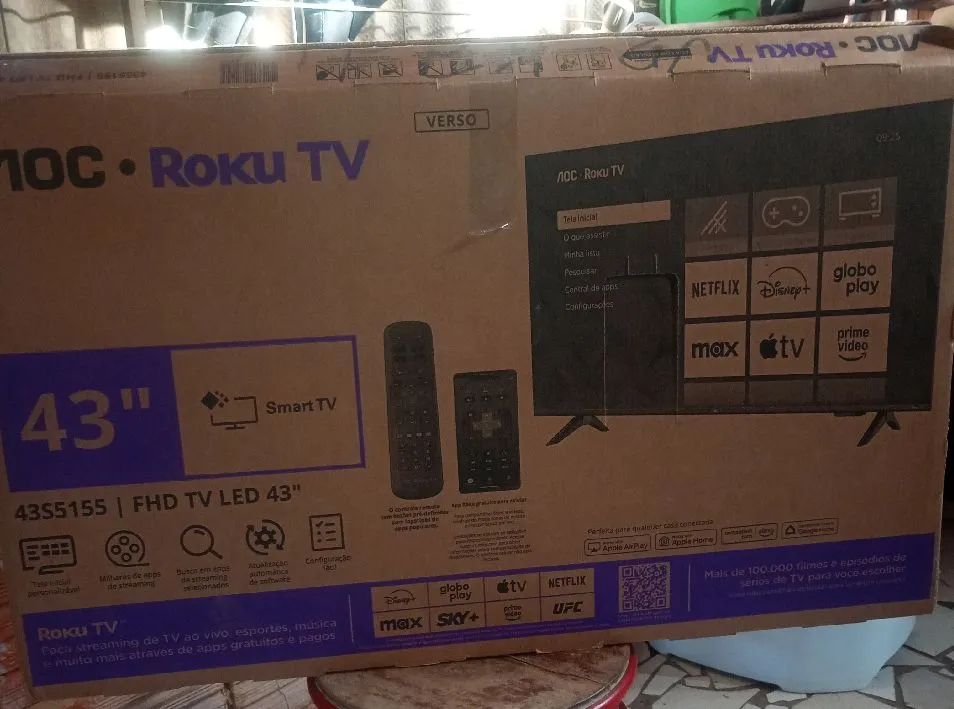 Vendo so a caixa da TV com tudo dentro incluído os pé da TV a caixa e 43 polegadas vai o isopor dentro bom pra quem vai viajar retirar no calafate